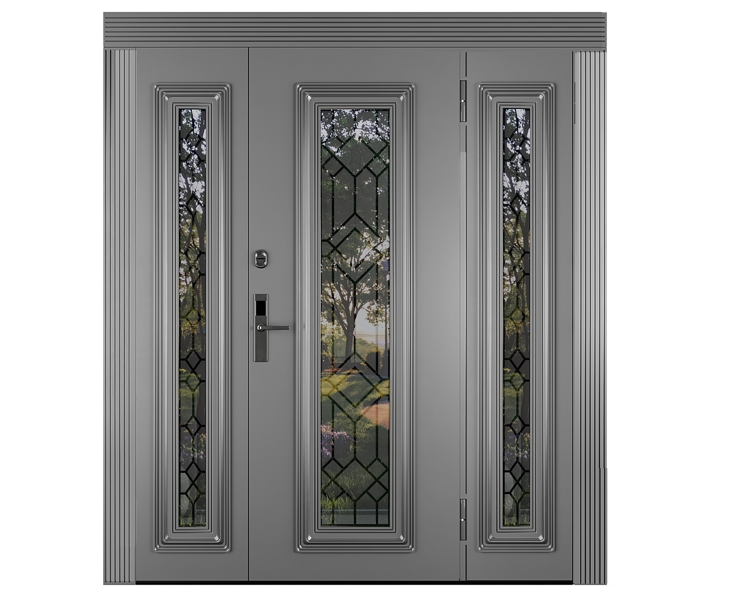 - Дизайнерские входные двери могут быть выполнены в разных стилях, например: хай-тек, классика, модерн.